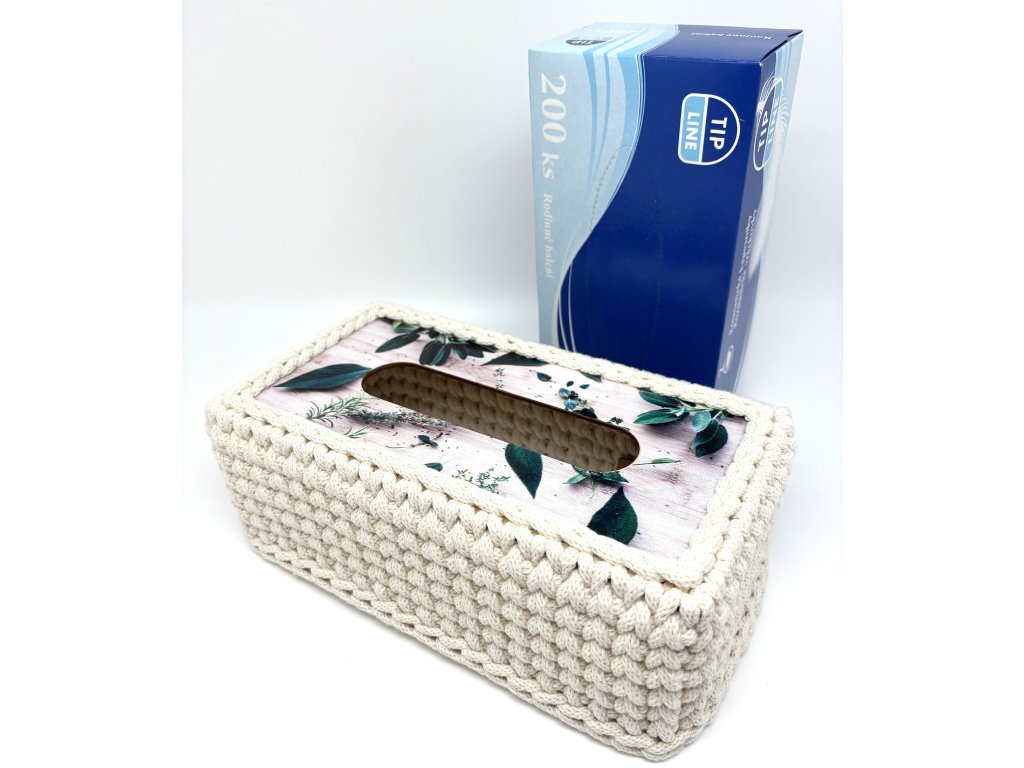 Box je zhotoven pro vyšší krabičku kapesníčků, přičemž jedna krabička je součástí dodávky.
