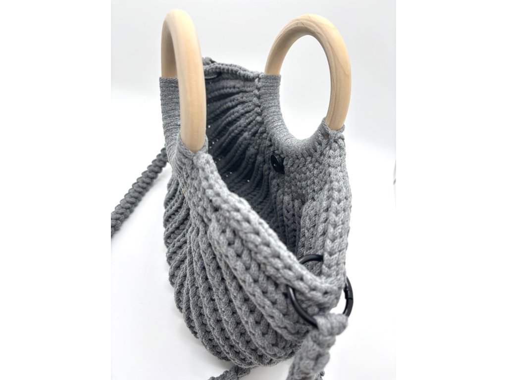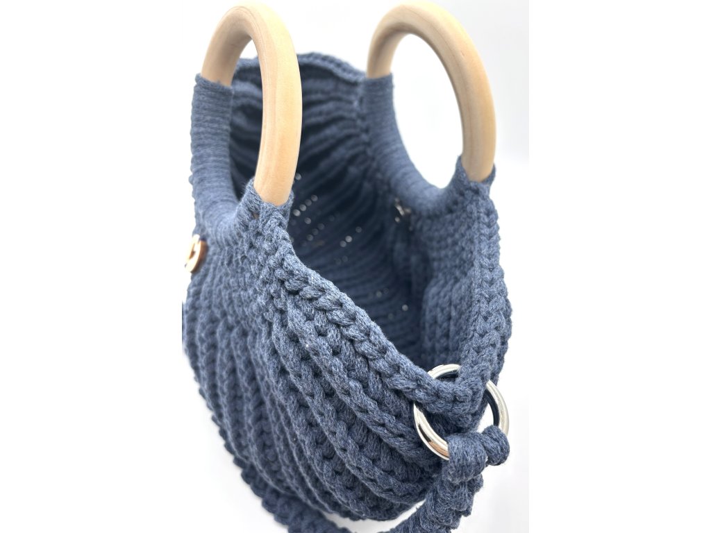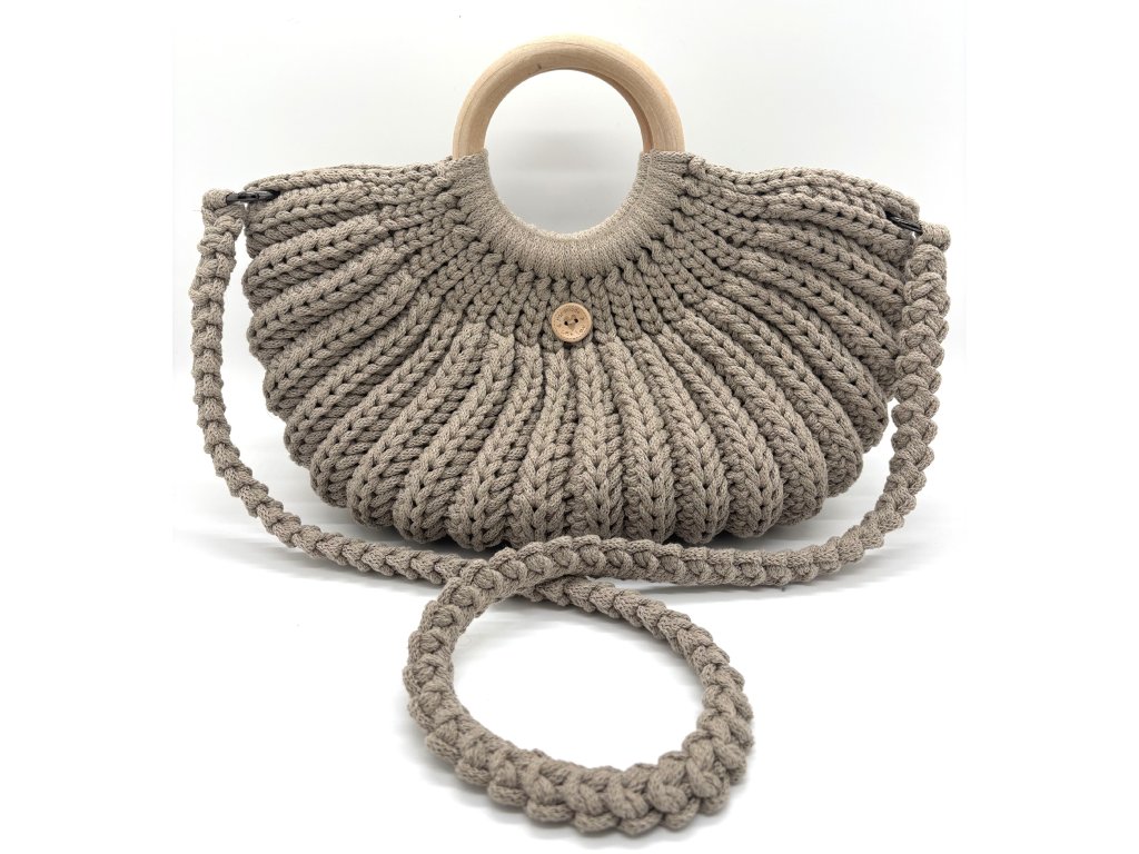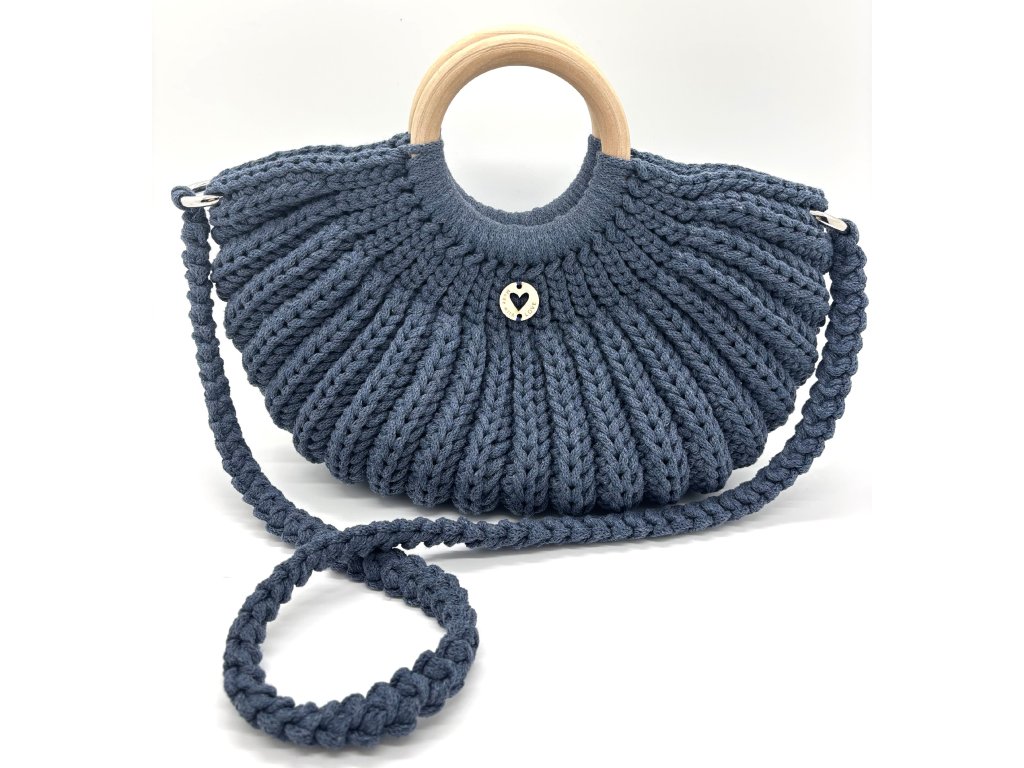 Netradiční kabelka s výrazným lodním tvarem, která připomíná korpus gondoly. Kabelka nemá klopu, je vybavena magnetickým zapínáním a háčkovaným popruhem pro pohodlné nošení. Kruhová dřevěná ucha dodávají kabelce výrazný, extravagantní charakter. Design je vhodný pro ženy, které se nebojí experimentovat a hledají odvážný, originální doplněk k outfitům.