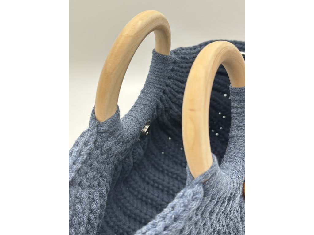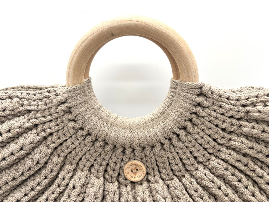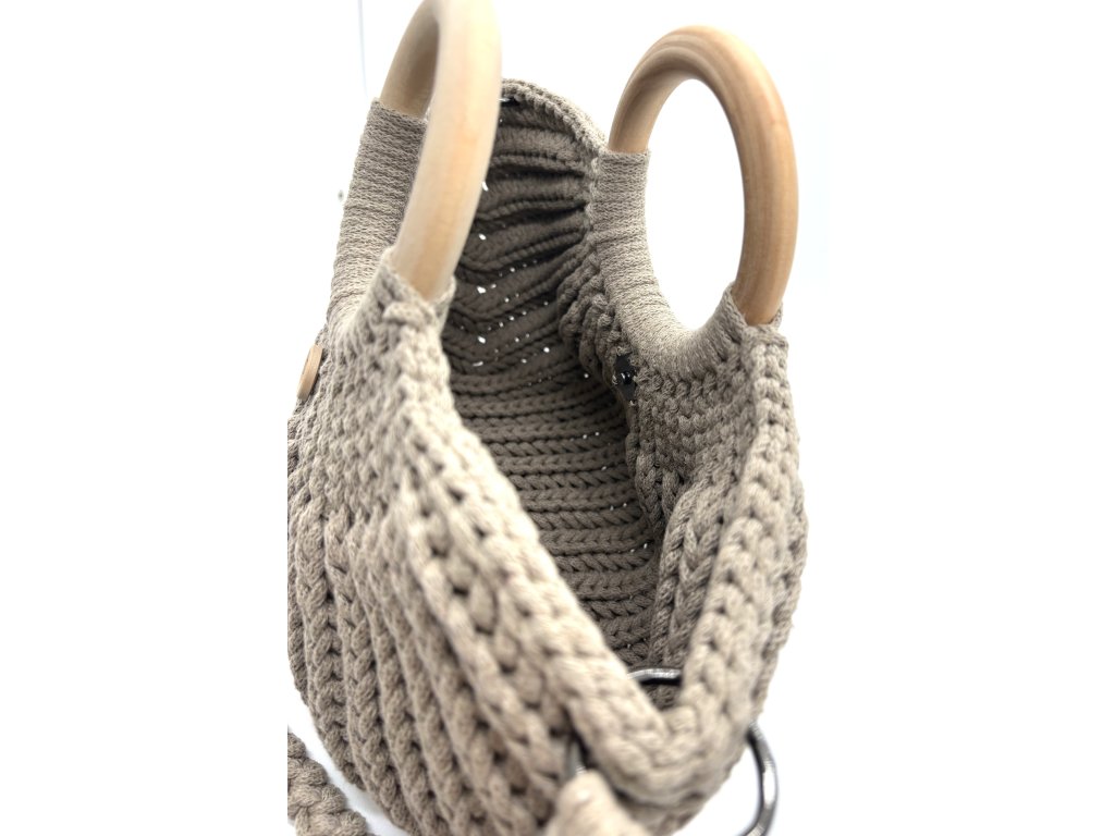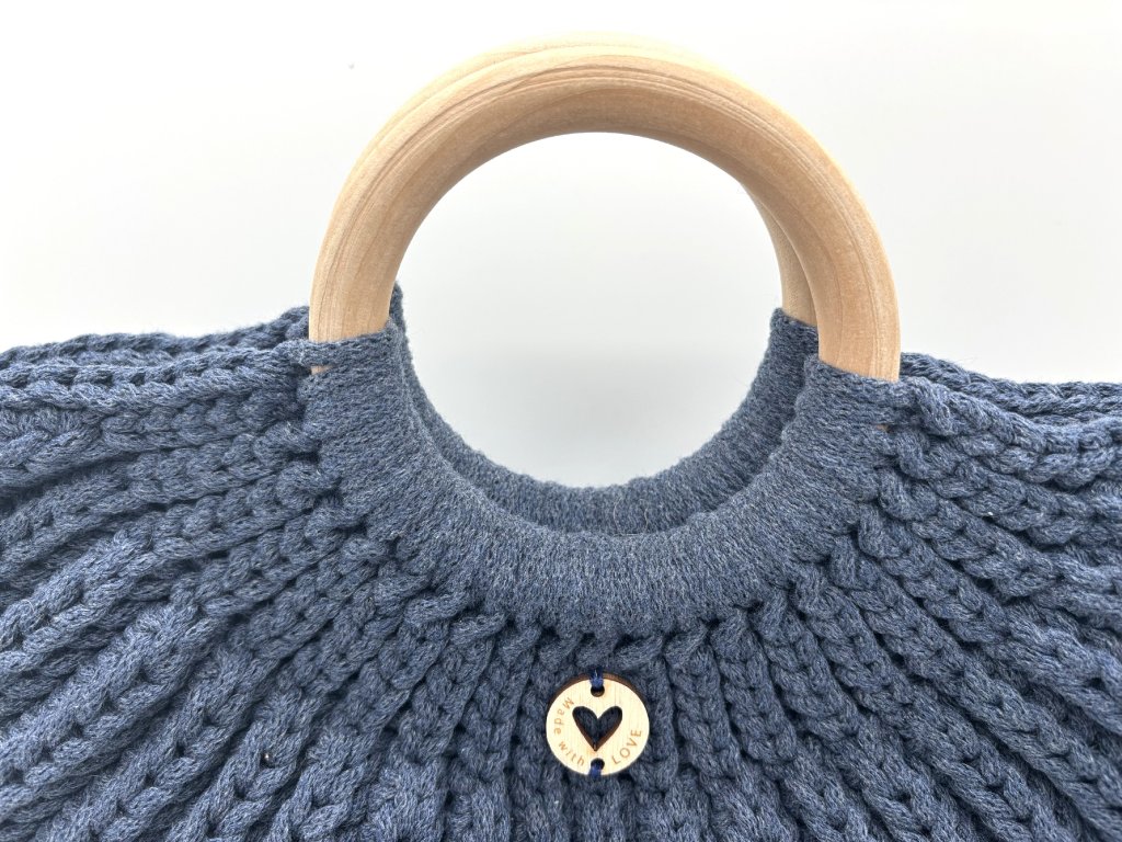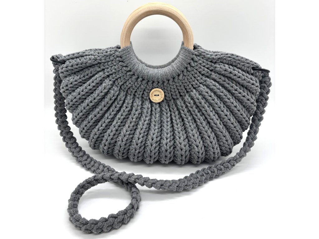 Netradiční kabelka s výrazným lodním tvarem, která připomíná korpus gondoly. Kabelka nemá klopu, je vybavena magnetickým zapínáním a háčkovaným popruhem pro pohodlné nošení. Kruhová dřevěná ucha dodávají kabelce výrazný, extravagantní charakter. Design je vhodný pro ženy, které se nebojí experimentovat a hledají odvážný, originální doplněk k outfitům.