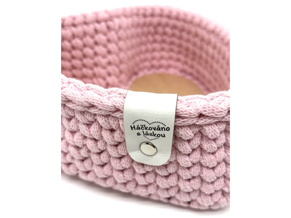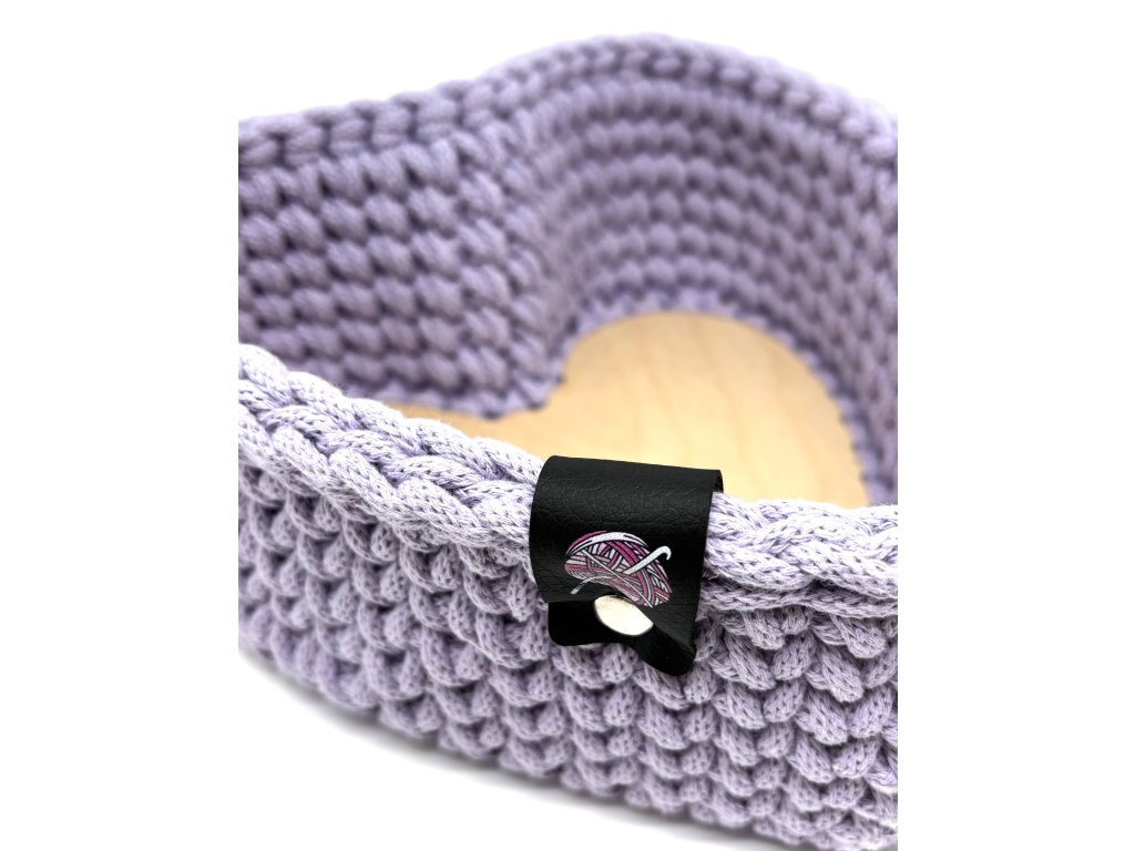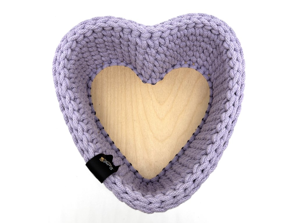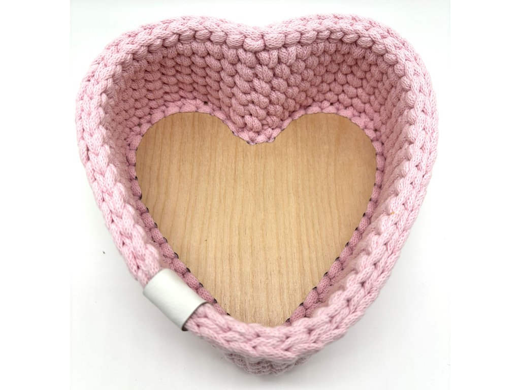 Háčkovaný košík ve tvaru srdce s pevným dnem