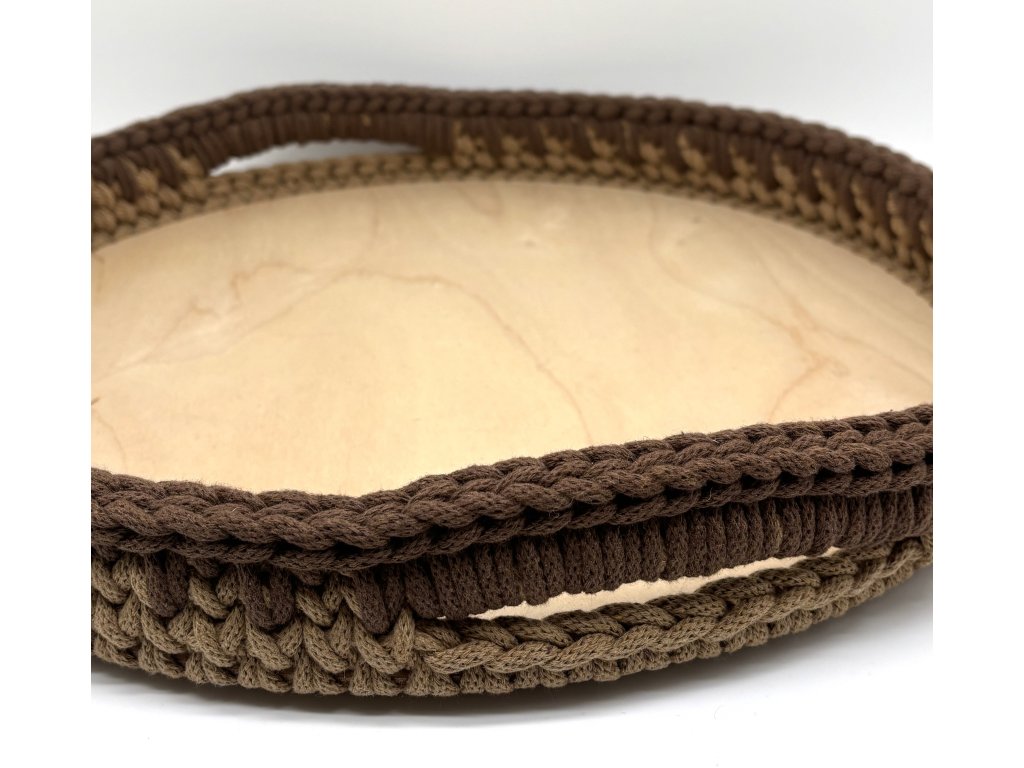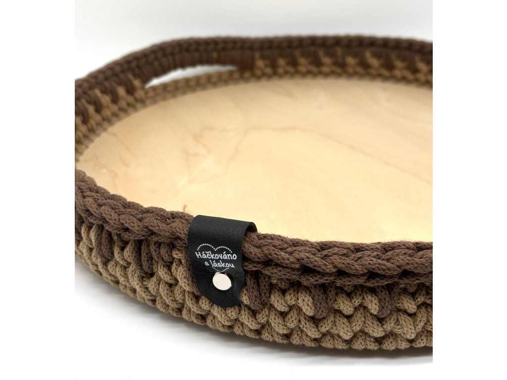 Ručně háčkovaný podnos je krásným a zároveň praktickým doplňkem do každého interiéru. Díky pevnému zpracování a stabilnímu tvaru skvěle slouží jako podnos – například k donesení kávy, čaje nebo drobného občerstvení nebo třeba jako nádoba k odkládání drobností, šperků, kosmetiky, svíček nebo jako dekorace na stole či komodě. Praktická a zároveň nápaditě řešená ucha zajišťují pohodlné přenášení a dodávají podnosu originální vzhled.
