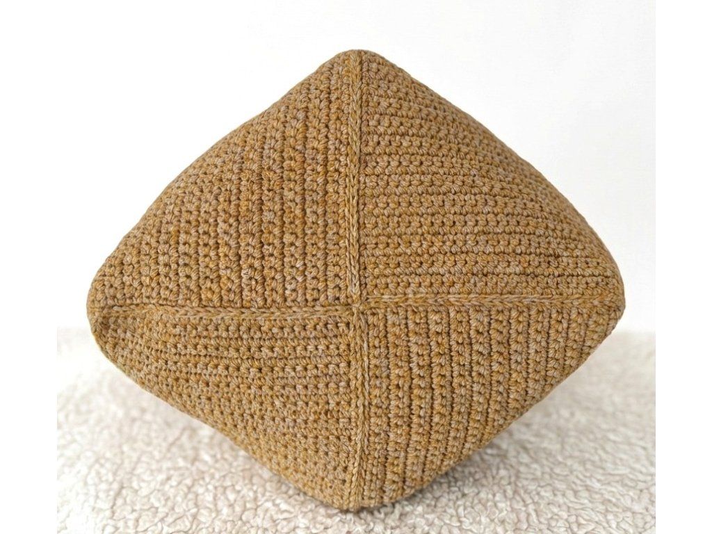 Quadra Linea je prostorná háčkovaná letní taška s promyšlenou konstrukcí. Vznikla spojením čtyř dlouhých pruhů, které se setkávají v čtvercové základně a na bocích vytvářejí jemné šikminy s decentním vzorem.