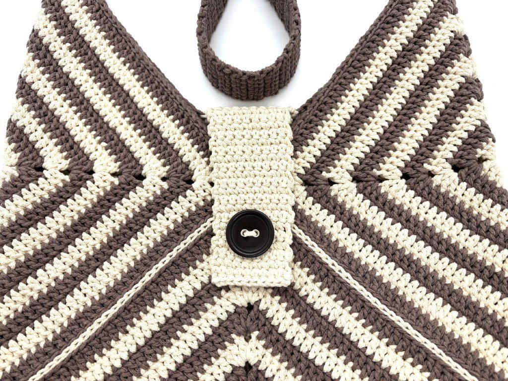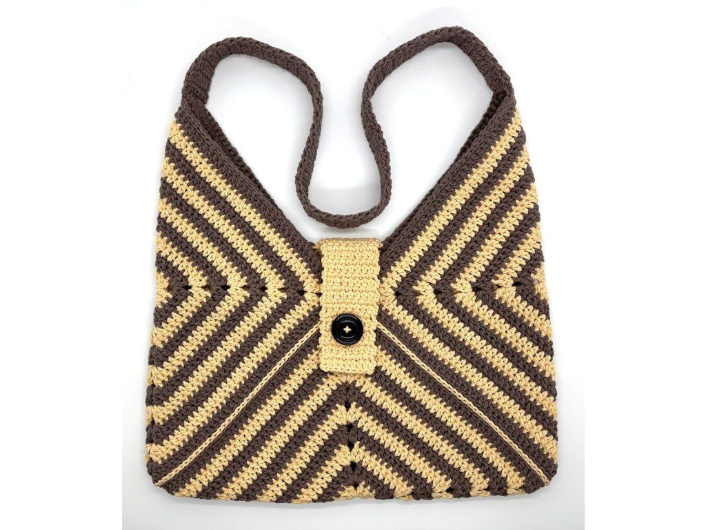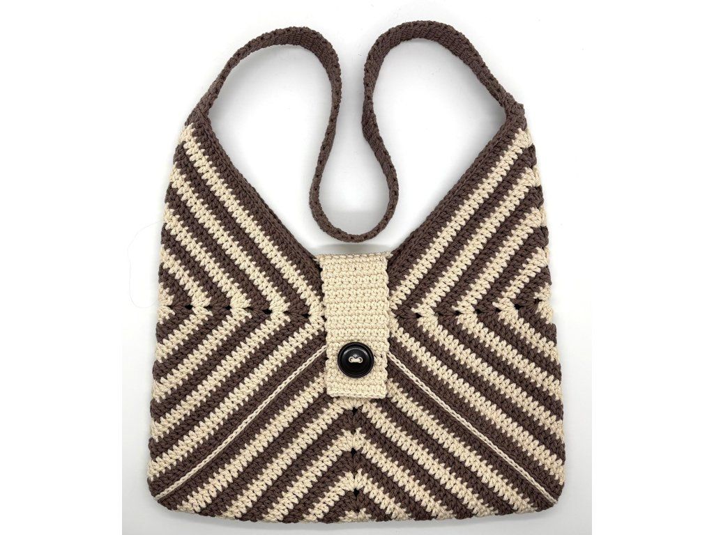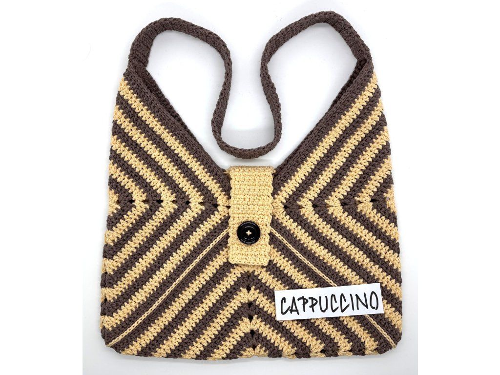 Taška Tiger je prostorná háčkovaná letní taška, která zaujme na první pohled svým výrazným proužkováním připomínajícím tygří vzor. Vznikla spojením tří háčkovaných čtverců, jejichž kombinace dvou barev vytváří originální a hravý efekt.